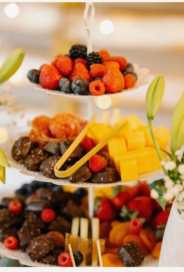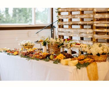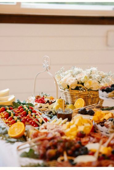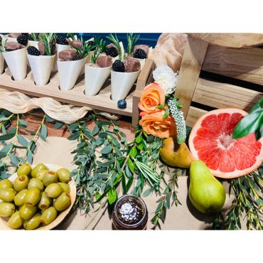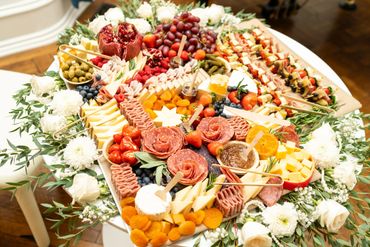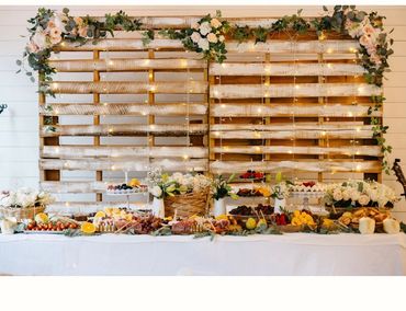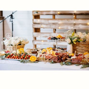 Bring the charm of the countryside to your event with our Rustic Harvest Grazing Table. We utilize a variety of wooden boards to create an eye-catching, multi-level display that adds depth and dimension to your spread. Fresh greenery and floral accents, customized to your preferred color palette, complete the rustic aesthetic, evoking a sense of warmth and abundance.